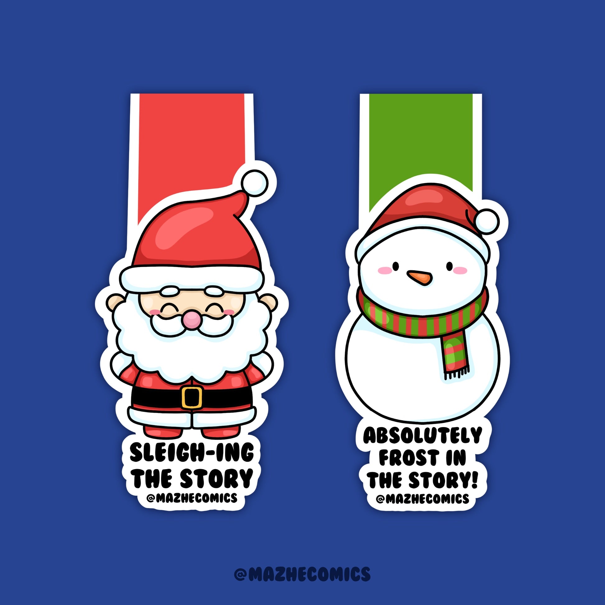 Set of 2 Santa & Snowman Magnetic Bookmark