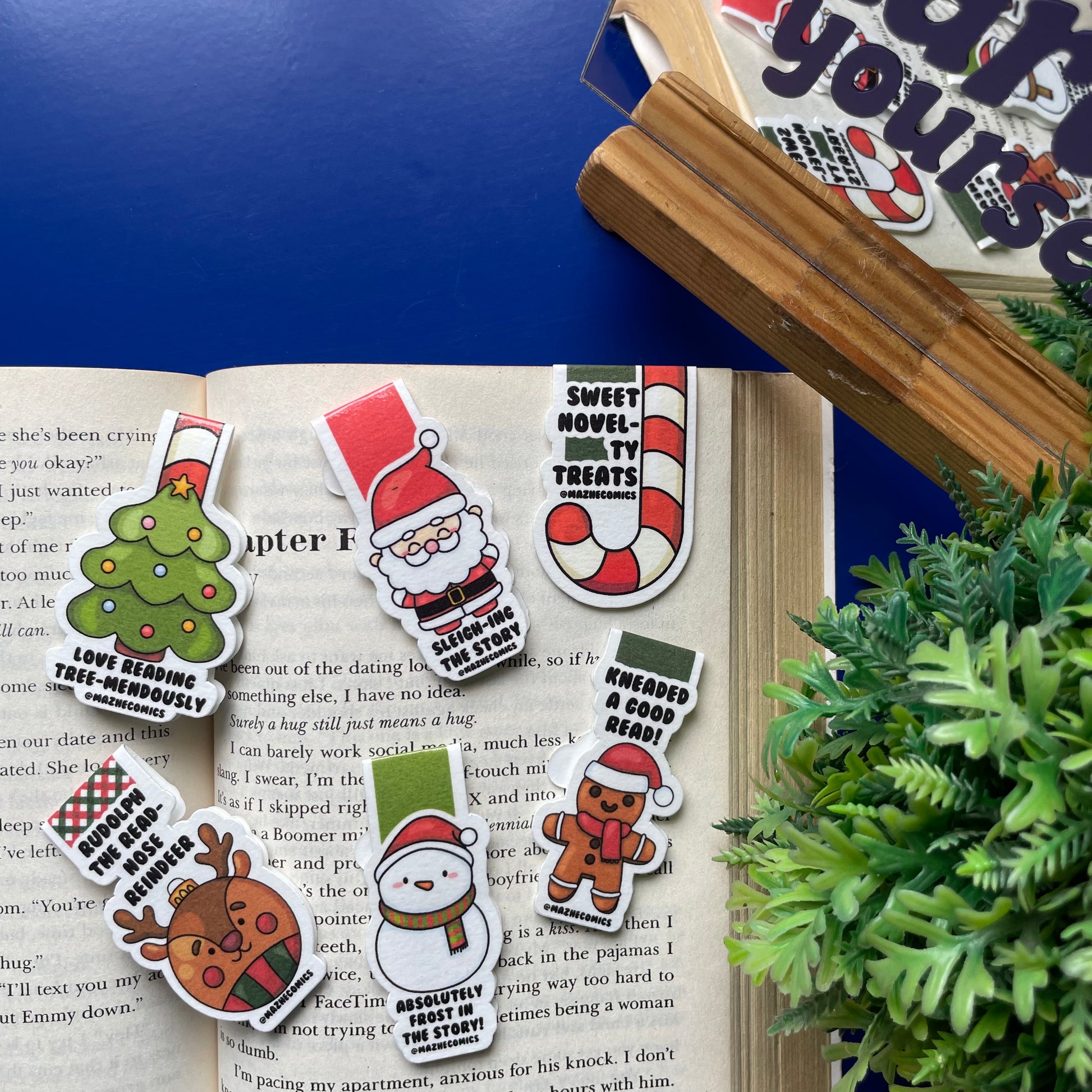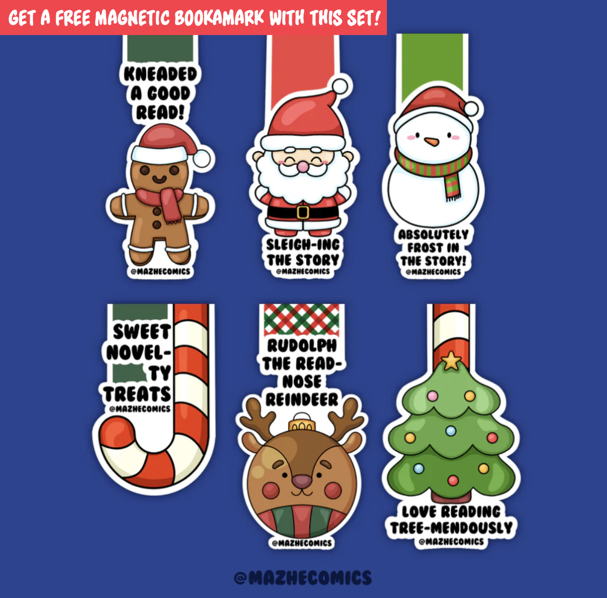 Set of 6 X-mas Themed Magnetic Bookmarks