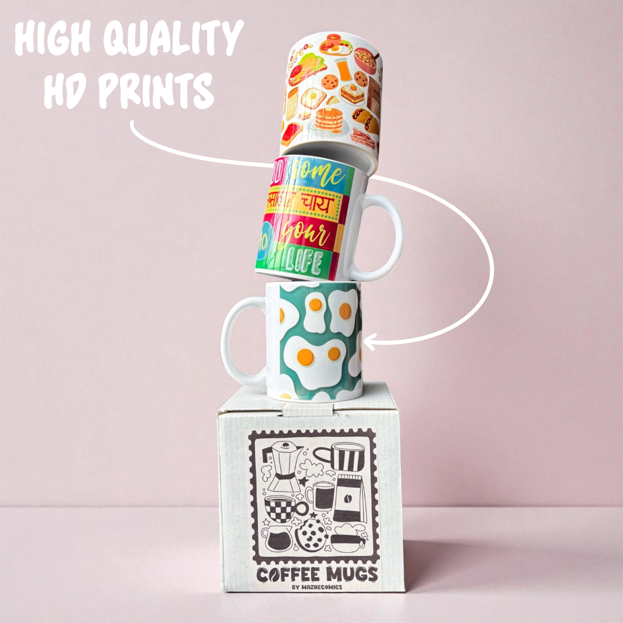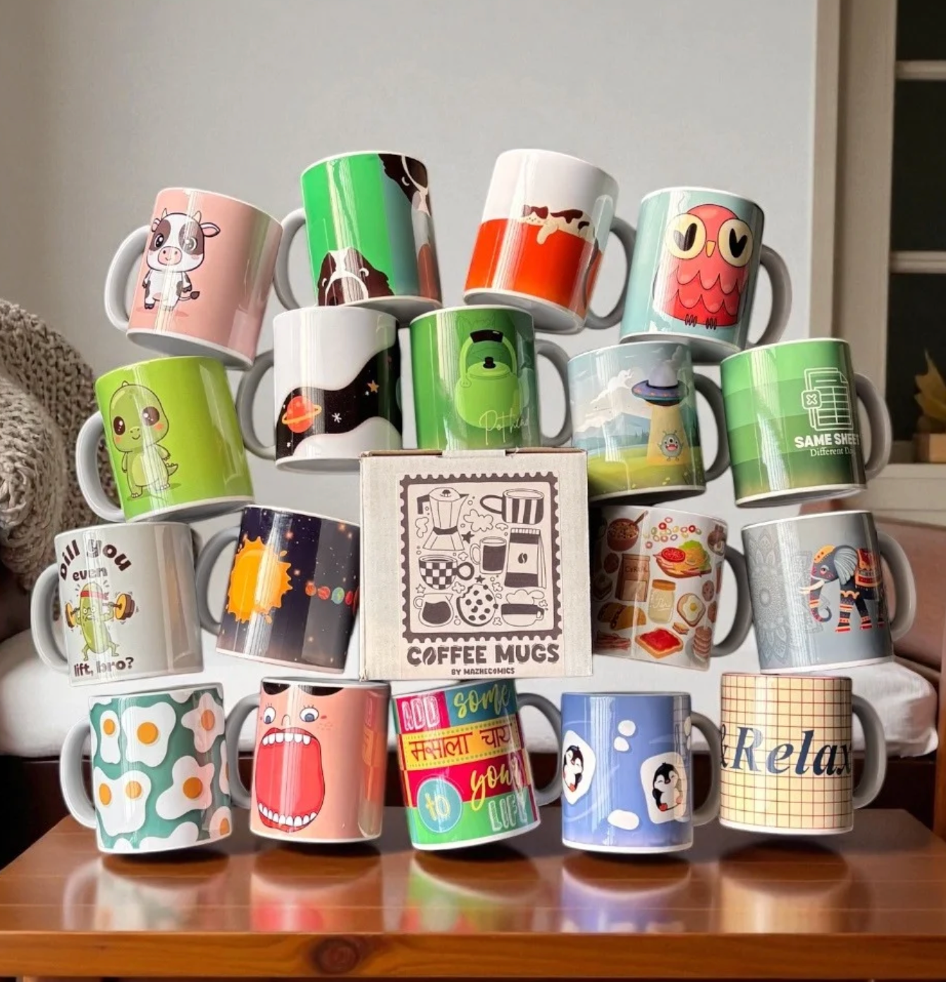 Start your mornings with mugs that spark joy. At MazheComics®, every ceramic mug is designed to make your daily sip a little brighter — with playful illustrations, uplifting messages and colours that energise your day. Made with premium ceramic for a smooth, sturdy feel, these mugs bring comfort, creativity and a touch of positivity to every coffee or chai moment. With long-lasting prints and designs that make you smile, our mugs turn simple sips into cosy, feel-good rituals.